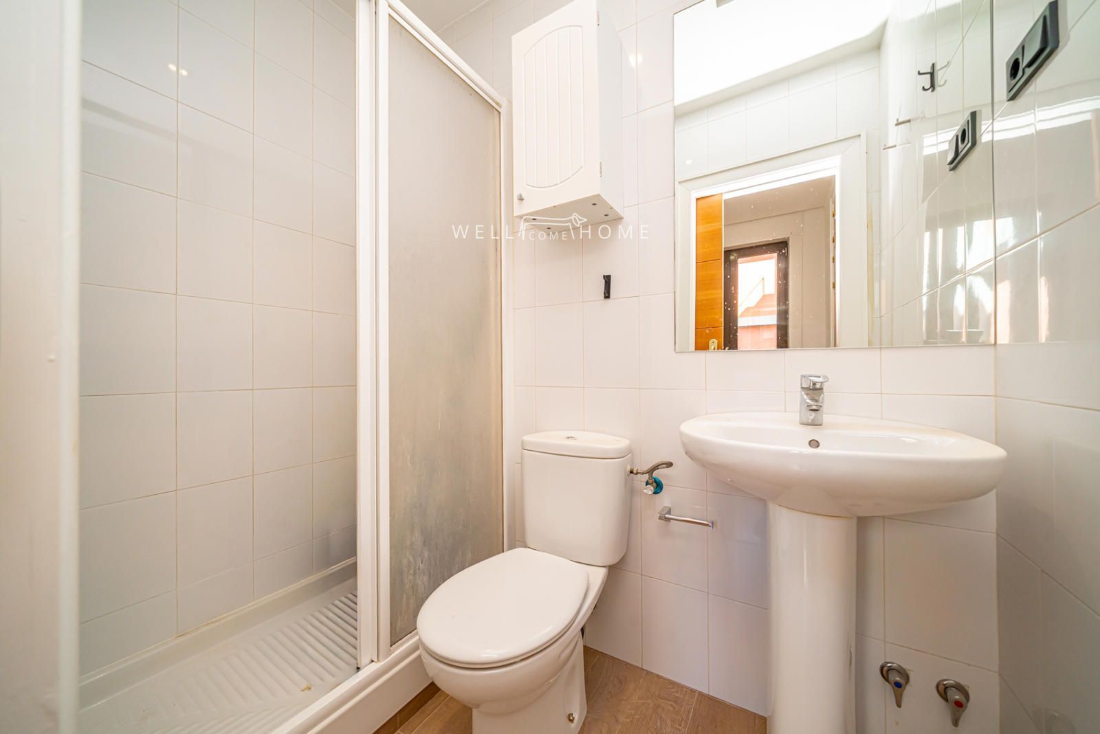 El piso cuenta con la siguiente distribución: en la planta de abajo se encuntra un amplio recibidor que da paso a un espacioso salón/comedor, muy luminoso con acceso a una terraza exterior con vistas a la calle, el piso además cuenta con una cocina cerrada, un cuarto de lavandería, una habitación suite de servicio, y un aseo de cortesía.