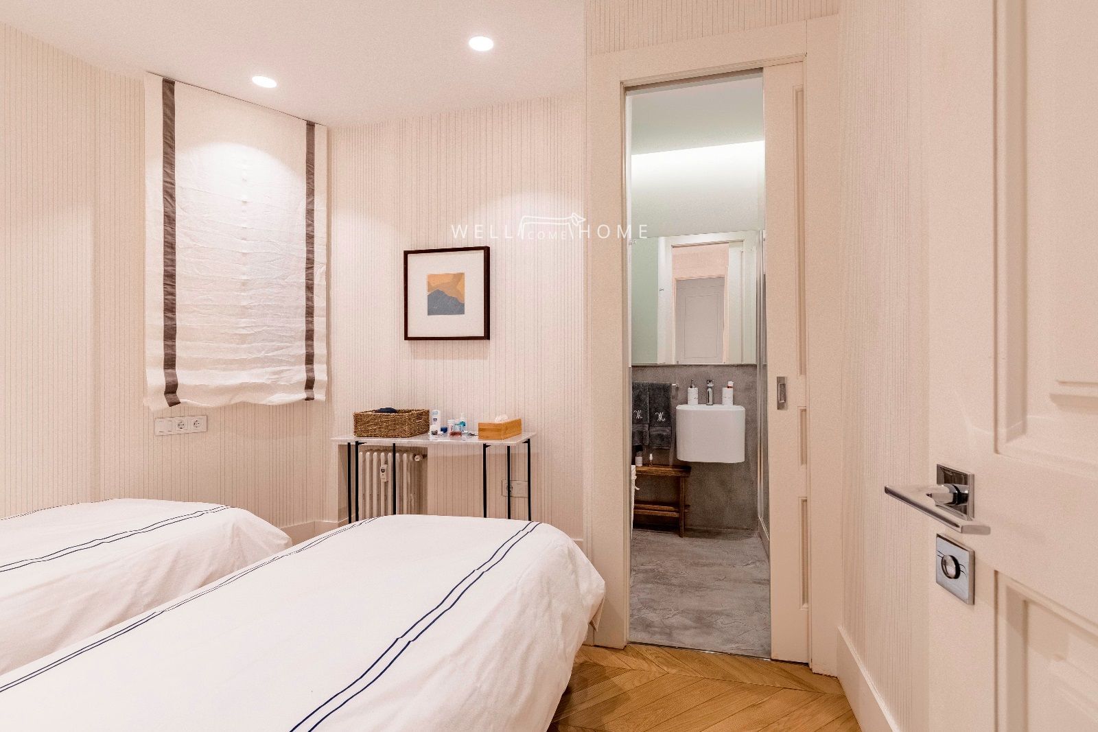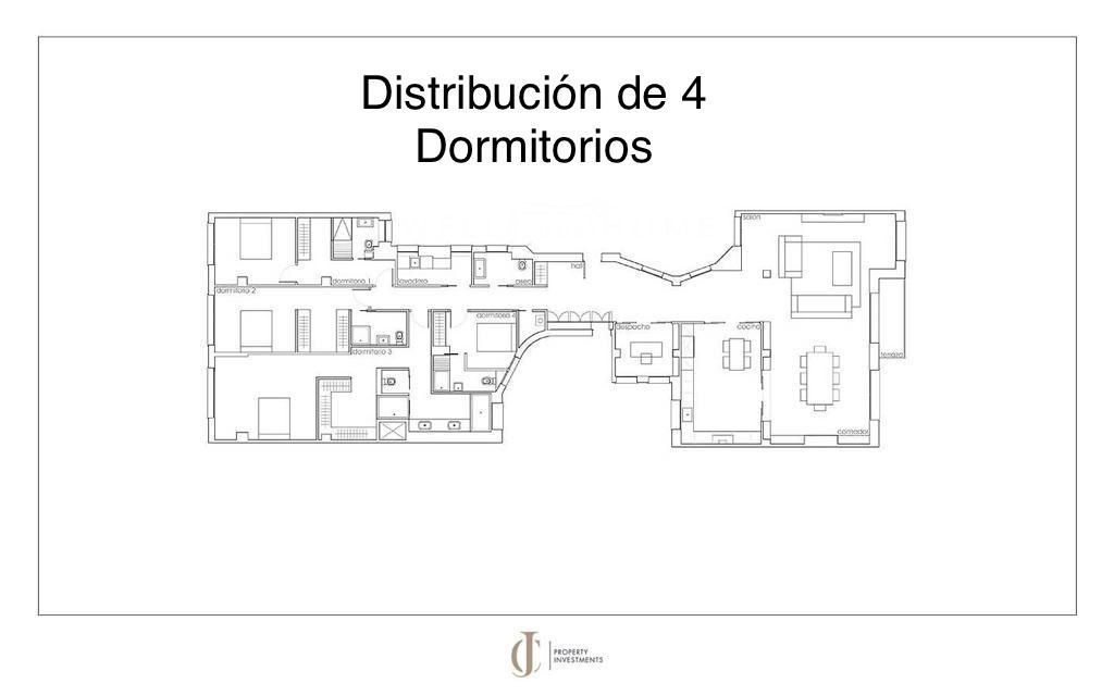 La zona de descanso ofrece tres dormitorios en suite con posibilidad de sacar una cuarta habitación (se puede apreciar en el segundo plano incluido en esta presentación).Dos de los dormitorios son inmensos y disfrutan de una luz natural imbatible ya que está proyectados a un bonito y tranquilo patio de manzana.