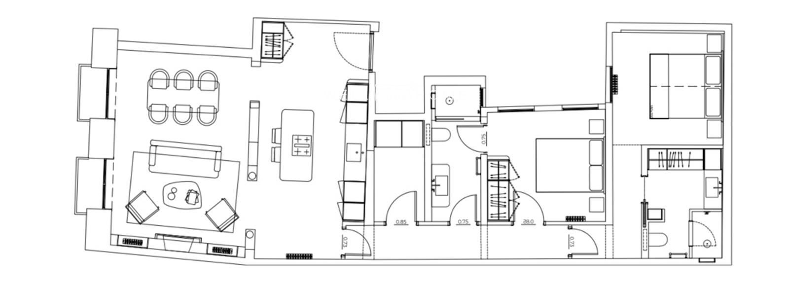 La zona de habitaciones se compone de 2 dormitorios, todos ellos con su baño compelto en suite, uno de los baños con acceso en el pasillo, garantizando comodidad a la vivienda.