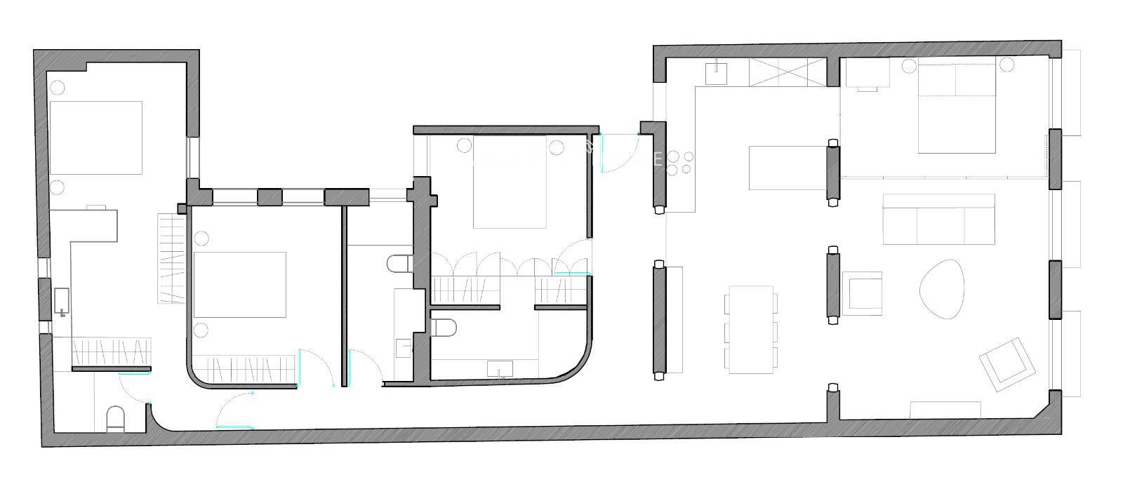 La zona de descanso se distribuye en cuatro dormitorios, dos de ellos con baño en suite, además de un tercer baño completo que da servicio al resto de habitaciones. Una vivienda única que combina amplitud, diseño y ubicación en uno de los barrios con más personalidad de la capital.